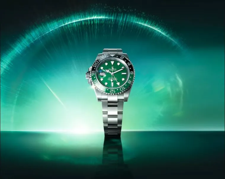 Last year's Absinthe — the GMT-Master II in reference 126729VTNR with its vivid green and black bezel — was arguably the most talked-about Rolex release in recent memory. In 2026, Rolex gives it the bracelet treatment it deserved: the Absinthe dial and ceramic bezel combination now ships on a Jubilee bracelet as a standard option, not just the Oyster.