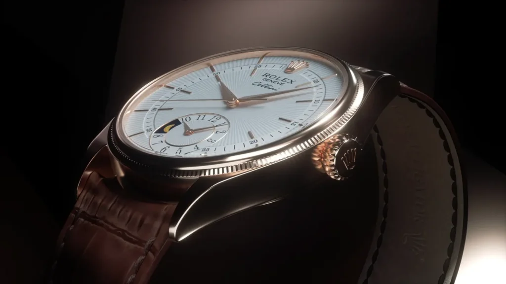 The modern Cellini collection that most super clone buyers know crystallised in 2014, when Rolex introduced three distinct Cellini references that represented the most coherent vision the line had ever had. The Cellini Time offered a classic three-hand display in an 18ct gold case. The Cellini Date added a date complication with an off-centre display — elegant and unusual. The Cellini Moonphase added a moon phase indicator at six o'clock, a complication that Rolex had never offered in its sports watches.