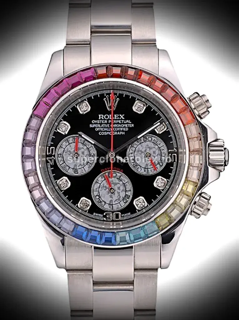 The Rolex Daytona 39mm Black Dial 80250 brings the iconic Daytona design to your wrist. Featuring a black dial in a 39mm 904l steel case, this super clone captures every detail of the genuine reference.