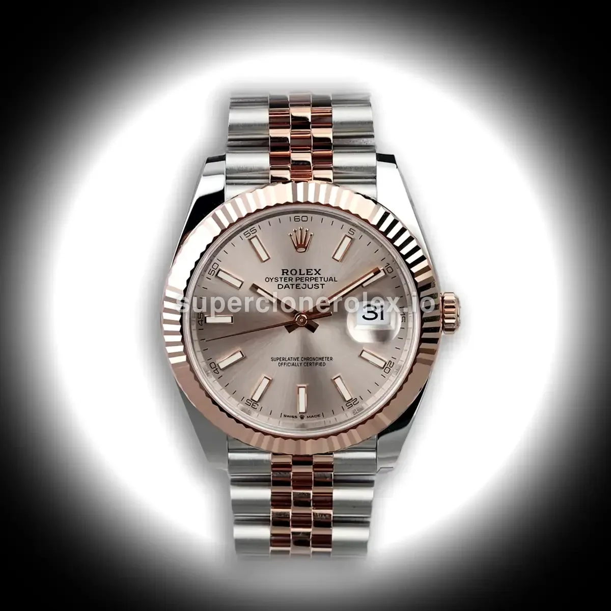 The Rolex Datejust 126331 41mm Rose Gold Sundust Dial Watch features a Rose Gold dial on a Jubilee bracelet, powered by a precise automatic movement. Crafted in Stainless Steel & Rose Gold Plated with Sapphire crystal and 30m (Swiss), this Datejust reference delivers authentic Rolex aesthetics. Available in 41 mm, this precision timepiece offers premium quality super clone craftsmanship at an accessible price point.