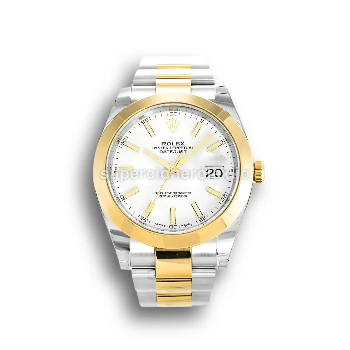 The Rolex Datejust II 126303 - 41mm White Dial Two-Tone features a White dial on a Oyster bracelet, powered by a precise automatic movement. Crafted in Stainless Steel & Yellow Gold Plated with Sapphire crystal and 30m (Swiss), this Datejust reference delivers authentic Rolex aesthetics. Available in 41 mm, this precision timepiece offers premium quality super clone craftsmanship at an accessible price point.