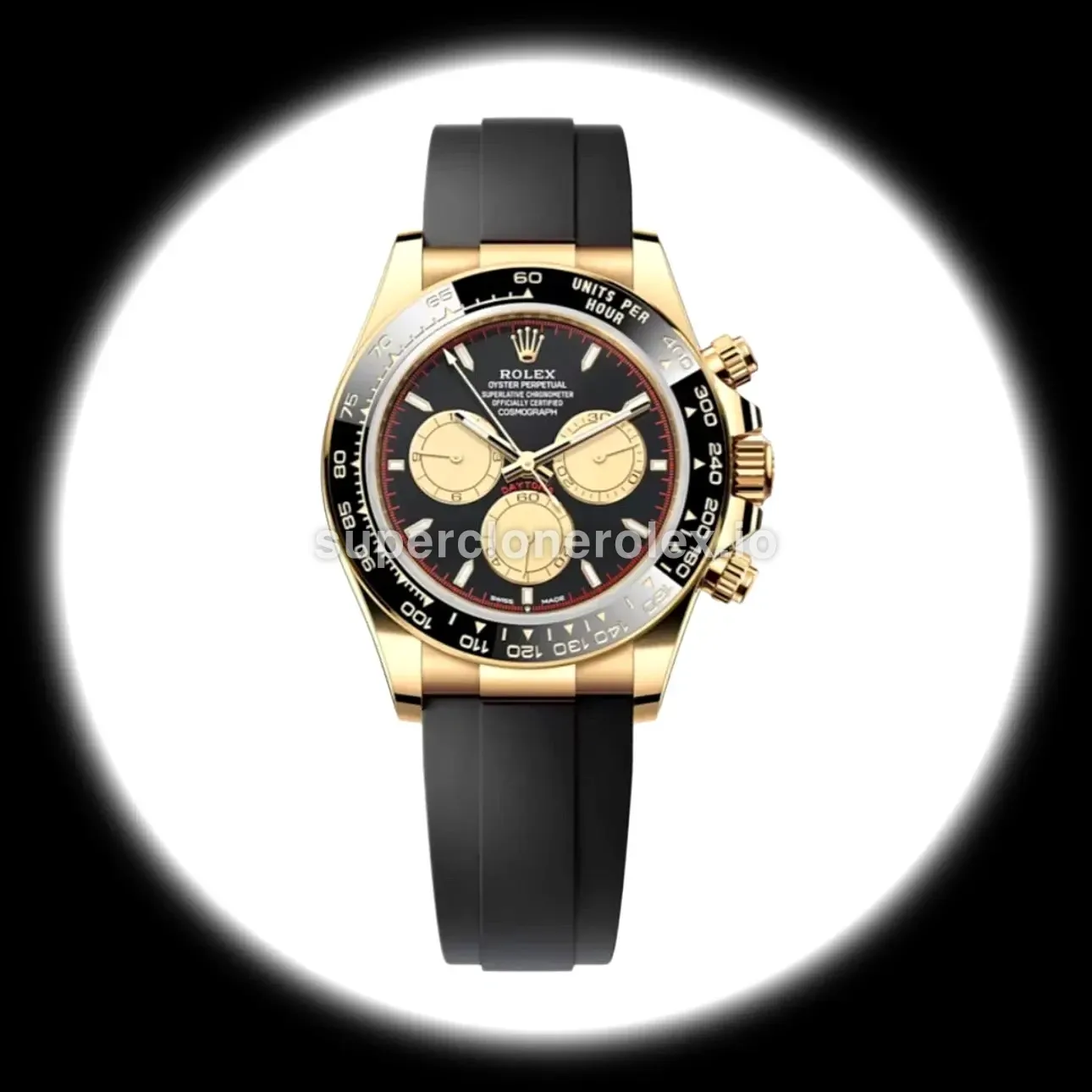 The Rolex Daytona 40mm Intense Black Dial 126518LN Rose Gold features a Intense black dial on a Oysterflex bracelet, powered by a precise automatic chronograph movement. Built for motorsport precision with Sapphire crystal and 30m (Swiss) water resistance, this legendary Daytona chronograph delivers authentic Rolex racing aesthetics. Available in 40 mm, this precision timepiece offers premium quality super clone craftsmanship at an accessible price point.
