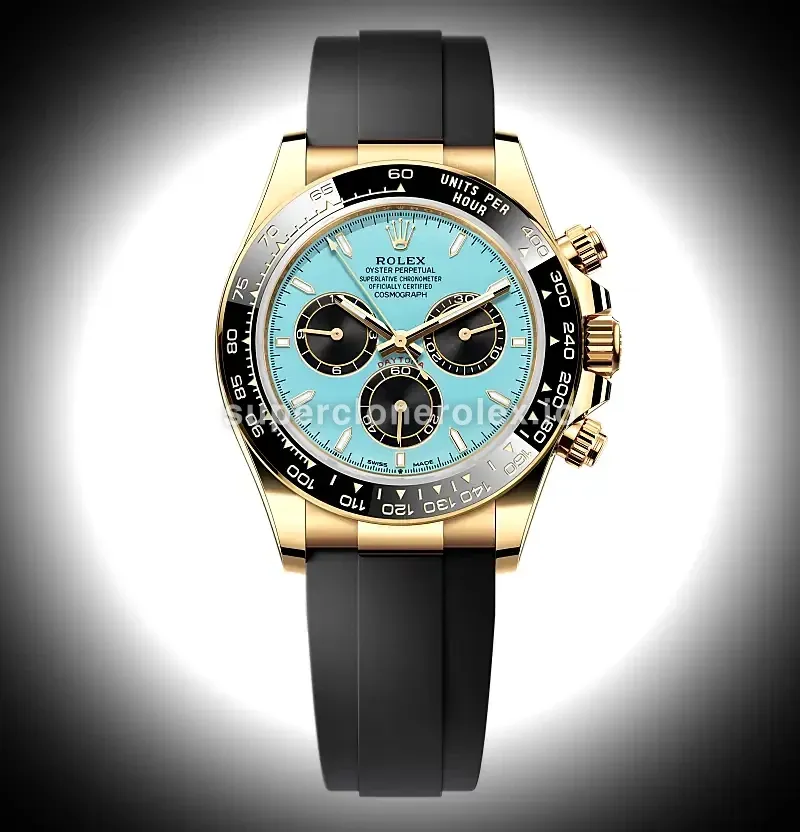 Brand Rolex Model Daytona Reference 126518LN Movement Kinetic (Automatic) Case Diameter 40 mm Case Material 18k Yellow gold Band Material Oysterflex Dial Color Turquoise blue and black Quality Swiss (ETA) Glass Sapphire crystal Water Resistance Waterproof up to 30 meters. https://superclonerolex.io/wp-content/uploads/2025/06/Replica-Daytona-40-mm-126518LN-Tiffany-Dial.mp4