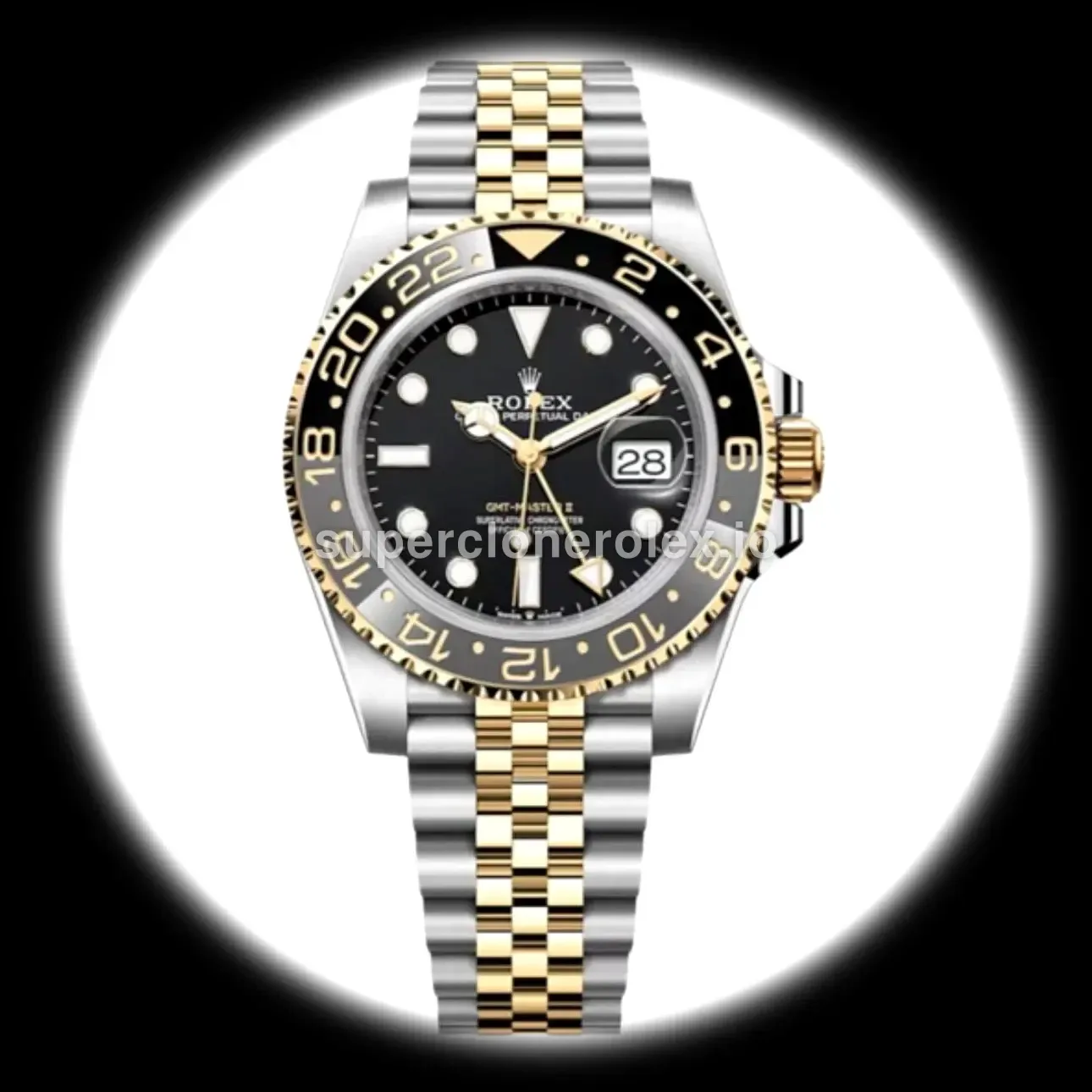 The Rolex GMT-Master II 126713GRNR Zombie Two-Tone Gold 40mm features a Black dial on a Jubilee bracelet, powered by a precise automatic GMT movement. Engineered for world travelers with Sapphire crystal and dual-timezone tracking, this GMT-Master reference delivers authentic Rolex GMT aesthetics. Available in 40 mm, this precision timepiece offers premium quality super clone craftsmanship at an accessible price point.