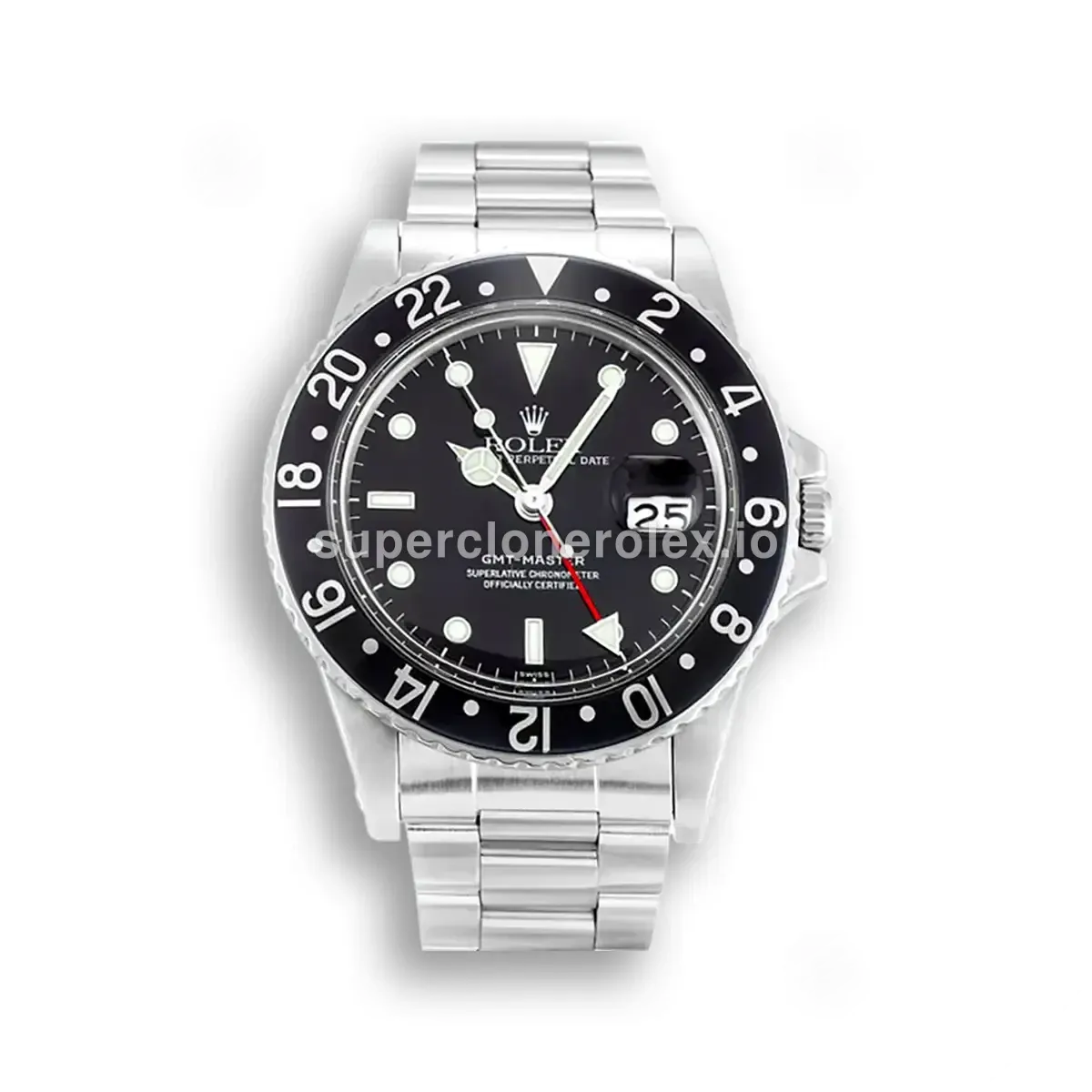 The Rolex GMT-Master 16750 - 40mm Black Dial Quickset Date features a Black dial on a Oyster bracelet, powered by a precise automatic GMT movement. Engineered for world travelers with Sapphire crystal and dual-timezone tracking, this GMT-Master reference delivers authentic Rolex GMT aesthetics. Available in 40 mm, this precision timepiece offers premium quality super clone craftsmanship at an accessible price point.