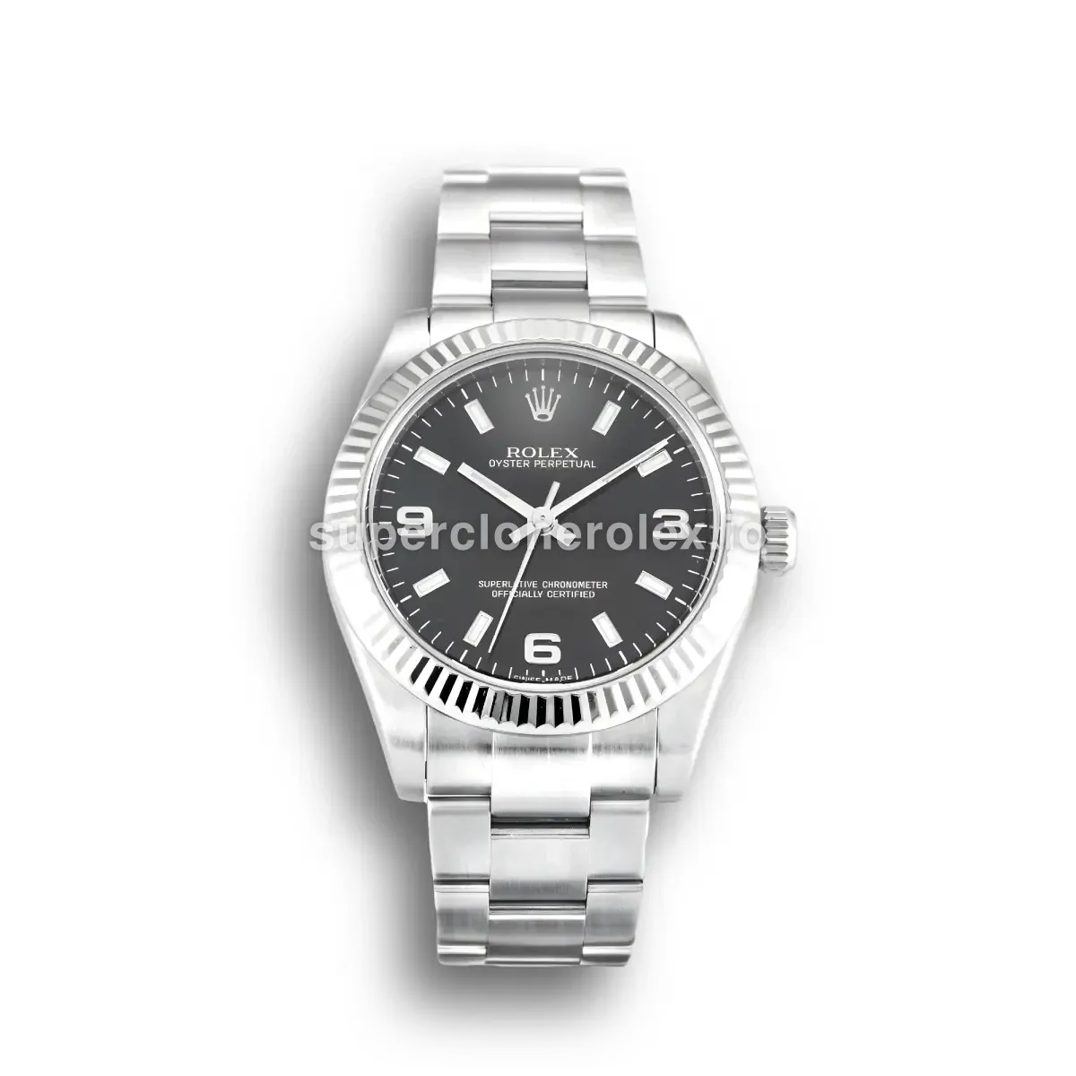 The Rolex Oyster Perpetual Lady 31mm Black Dial 177234 features a Black dial on a Oyster bracelet, powered by a precise automatic movement. Crafted in Stainless Steel with Sapphire crystal and 30m (Swiss), this Oyster Perpetual reference delivers authentic Rolex aesthetics. Available in 31 mm, this elegant ladies timepiece offers premium quality super clone craftsmanship at an accessible price point.