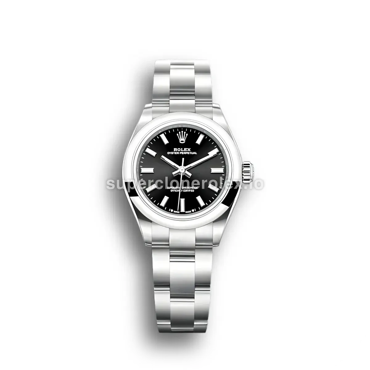 The Rolex Oyster Perpetual Lady 28mm Black Dial 276200 features a Black dial on a Oyster bracelet, powered by a precise automatic movement. Crafted in Stainless Steel with Sapphire crystal and 30m (Swiss), this Oyster Perpetual reference delivers authentic Rolex aesthetics. Available in 28 mm, this elegant ladies timepiece offers premium quality super clone craftsmanship at an accessible price point.