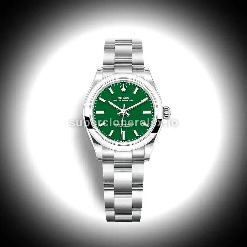 The Oyster Perpetual 31mm Green Dial 277200 features a Green dial on a Oyster bracelet, powered by a precise automatic movement. Crafted in Stainless Steel with Sapphire crystal and 30m (Swiss), this Oyster Perpetual reference delivers authentic Rolex aesthetics. Available in 31 mm, this elegant ladies timepiece offers premium quality super clone craftsmanship at an accessible price point.