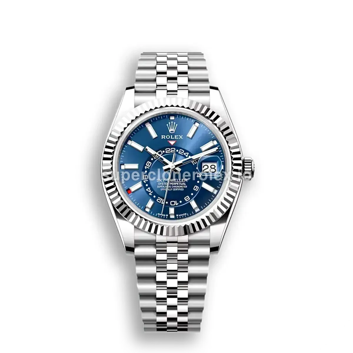 The Rolex Sky-Dweller 326934 Blue Dial 42mm features a Blue dial on a Jubilee bracelet, powered by a precise automatic annual calendar movement. Engineered with annual calendar and GMT complication, crafted in White Gold Plated with Sapphire crystal, this sophisticated Sky-Dweller reference delivers authentic Rolex complexity. Available in 42 mm, this precision timepiece offers premium quality super clone craftsmanship at an accessible price point.