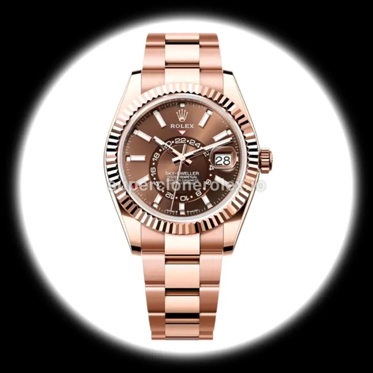 The Rolex Sky-Dweller 42mm Chocolate Dial Oysterflex Ref. 336935 features a Chocolate dial on a Oyster bracelet, powered by a precise automatic annual calendar movement. Engineered with annual calendar and GMT complication, crafted in Rose Gold Plated with Sapphire crystal, this sophisticated Sky-Dweller reference delivers authentic Rolex complexity. Available in 42 mm, this precision timepiece offers premium quality super clone craftsmanship at an accessible price point.