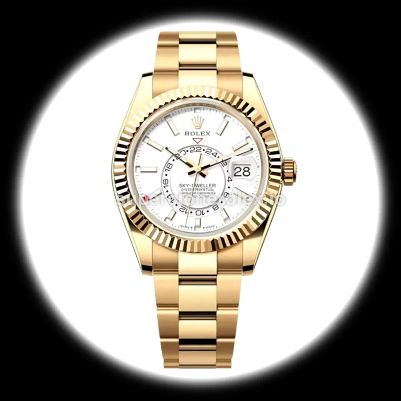 The Rolex Sky-Dweller 42mm Intense White Dial Everose Ref. 336938 features a Intense white dial on a Oyster bracelet, powered by a precise automatic annual calendar movement. Engineered with annual calendar and GMT complication, crafted in Yellow Gold Plated with Sapphire crystal, this sophisticated Sky-Dweller reference delivers authentic Rolex complexity. Available in 42 mm, this precision timepiece offers premium quality super clone craftsmanship at an accessible price point.