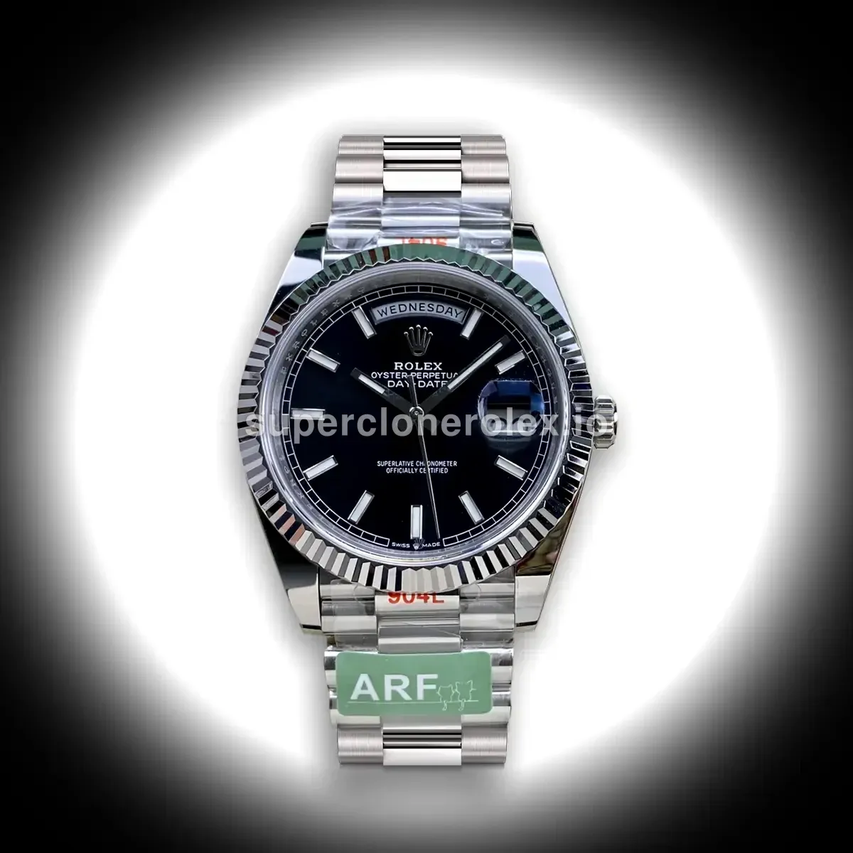 The Rolex Day-Date m228238 Bright Black Dial Platinum features a Bright Black dial on a President bracelet, powered by a precise automatic movement. Crafted in White Gold Plated with Sapphire crystal and 30m (Swiss), this prestigious Day-Date reference delivers the authentic Rolex Presidents watch experience. Available in 36 mm, this elegant ladies timepiece offers premium quality super clone craftsmanship at an accessible price point.