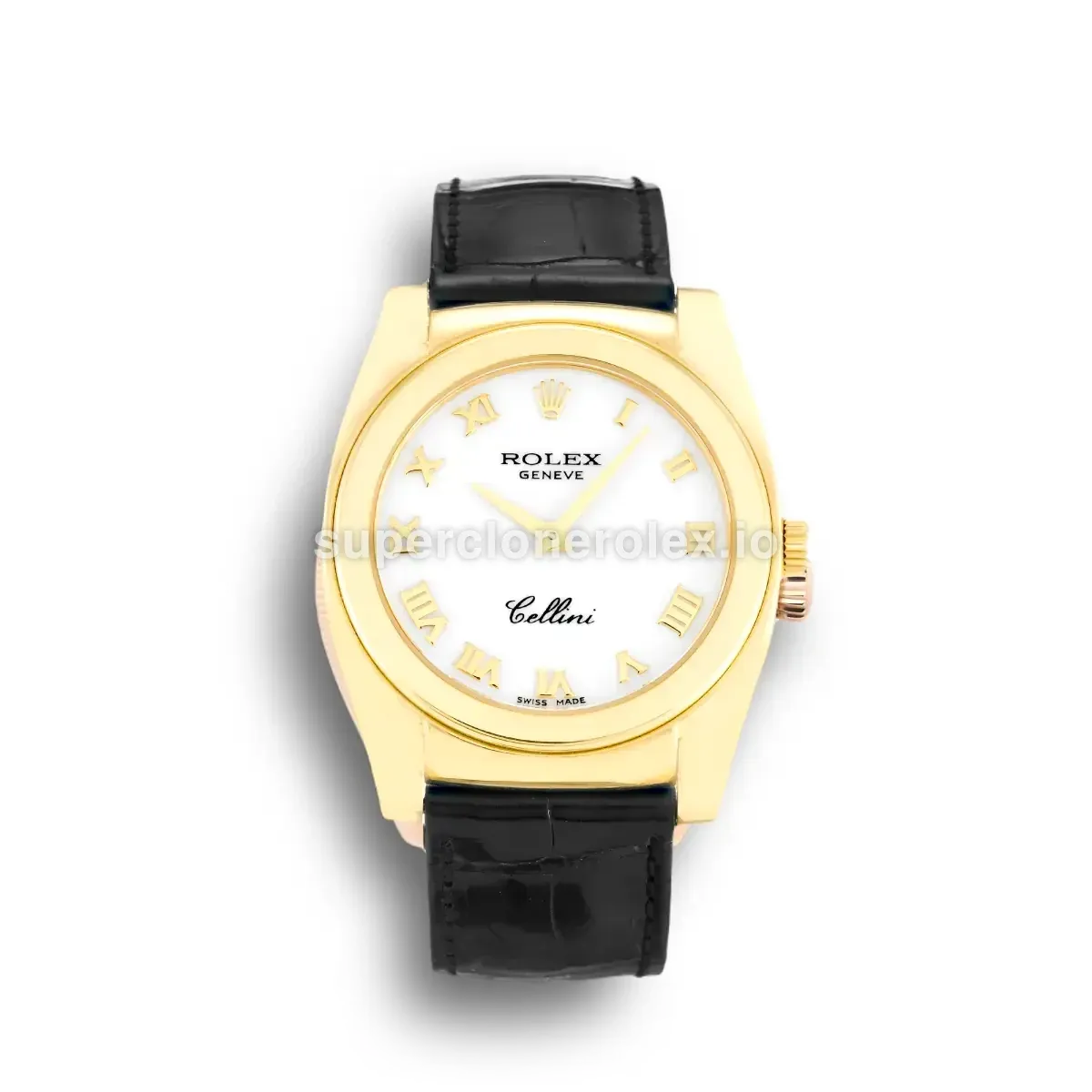 The Rolex Cellini 32mm White Dial – Ref. 5320 features a White dial on a Leather strap bracelet, powered by a precise automatic movement. Crafted in Yellow Gold Plated with Sapphire crystal and 30m (Swiss), this Cellini reference delivers authentic Rolex aesthetics. Available in 32 mm, this elegant ladies timepiece offers premium quality super clone craftsmanship at an accessible price point.