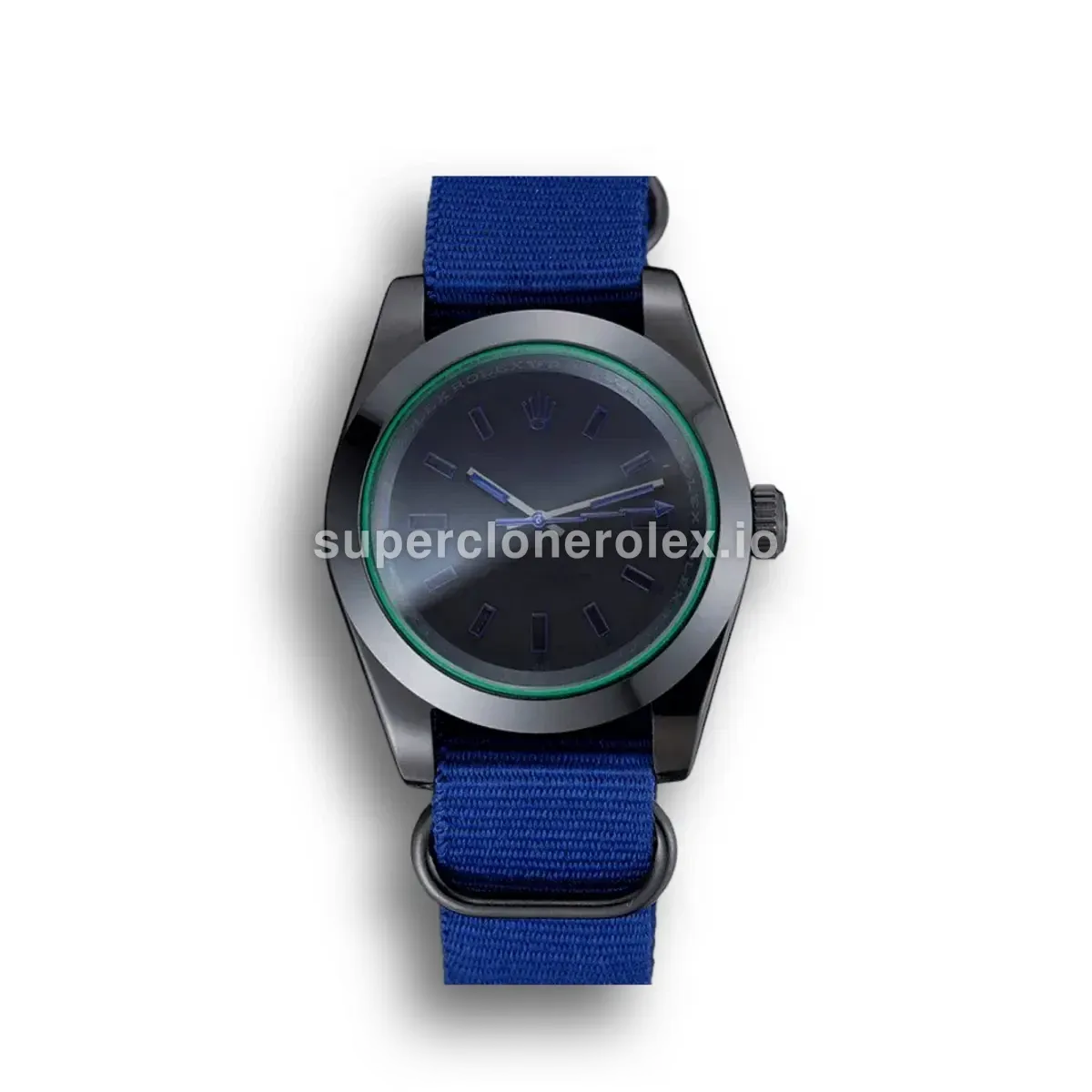 The Rolex Milgauss 40mm Blue Dial 622005 Z-Blue Crystal features a Blue dial on a Nylon bracelet, powered by a precise automatic movement. Crafted in Ion Plated Stainless Steel with Sapphire crystal and 30m (Swiss), this Milgauss reference delivers authentic Rolex aesthetics. Available in 40 mm, this precision timepiece offers premium quality super clone craftsmanship at an accessible price point.