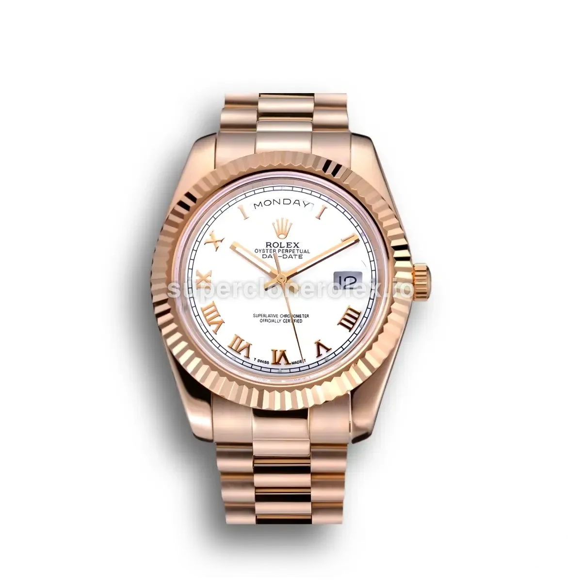 The Rolex Day-Date 622546 40mm White Dial Watch features a White dial on a President bracelet, powered by a precise automatic movement. Crafted in Rose Gold Plated with Sapphire crystal and 30m (Swiss), this prestigious Day-Date reference delivers the authentic Rolex Presidents watch experience. Available in 40 mm, this precision timepiece offers premium quality super clone craftsmanship at an accessible price point.