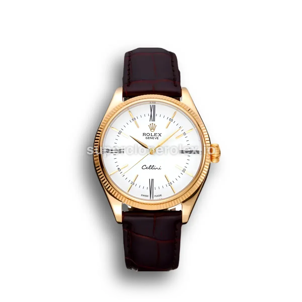 The Rolex Cellini 40mm White Dial – Ref. 622833 features a White dial on a Leather strap bracelet, powered by a precise automatic movement. Crafted in Yellow Gold Plated with Sapphire crystal and 30m (Swiss), this Cellini reference delivers authentic Rolex aesthetics. Available in 40 mm, this precision timepiece offers premium quality super clone craftsmanship at an accessible price point.