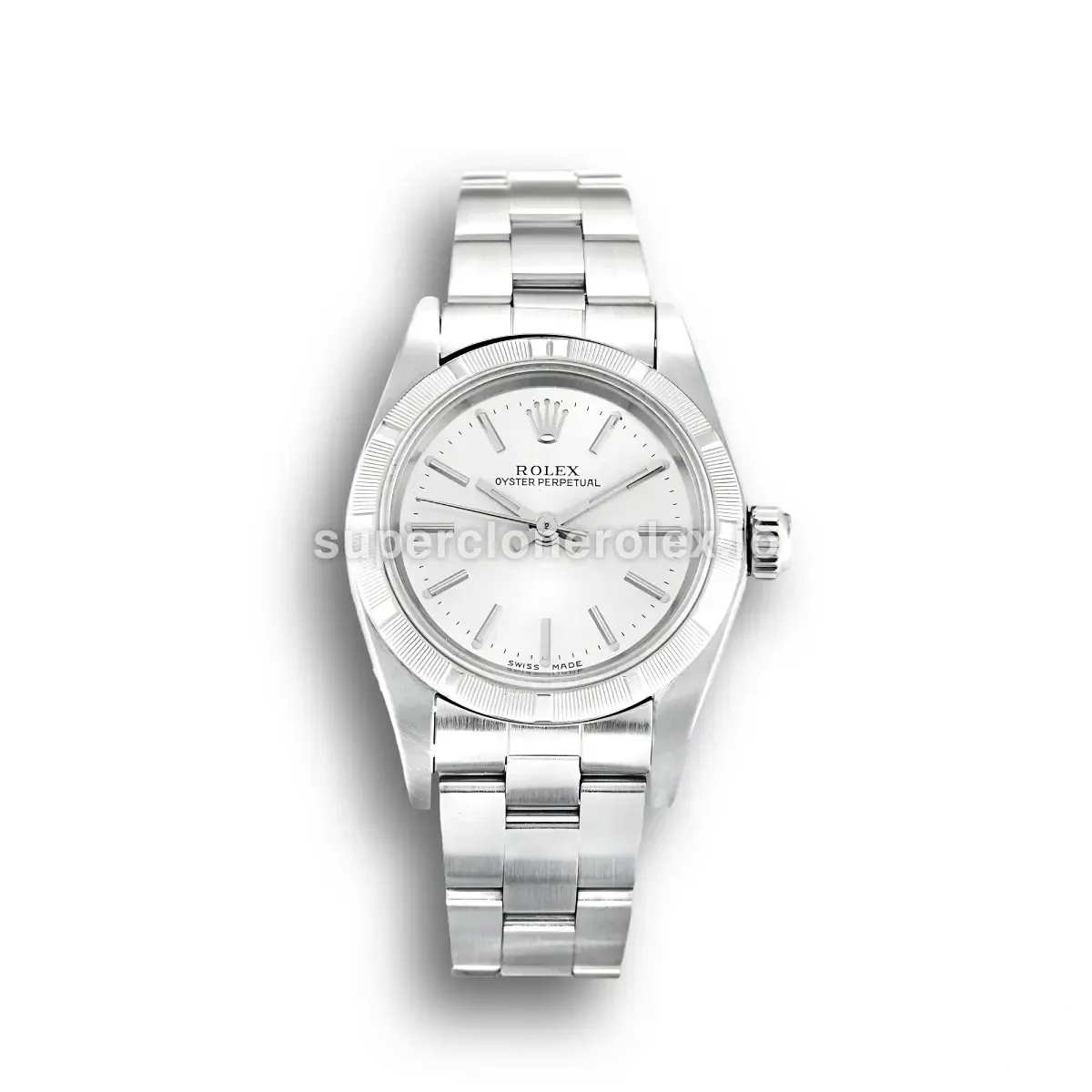 The Rolex Oyster Perpetual Lady 26mm Silver Dial 67230 features a Silver dial on a Oyster bracelet, powered by a precise automatic movement. Crafted in Stainless Steel with Sapphire crystal and 30m (Swiss), this Oyster Perpetual reference delivers authentic Rolex aesthetics. Available in 26 mm, this elegant ladies timepiece offers premium quality super clone craftsmanship at an accessible price point.