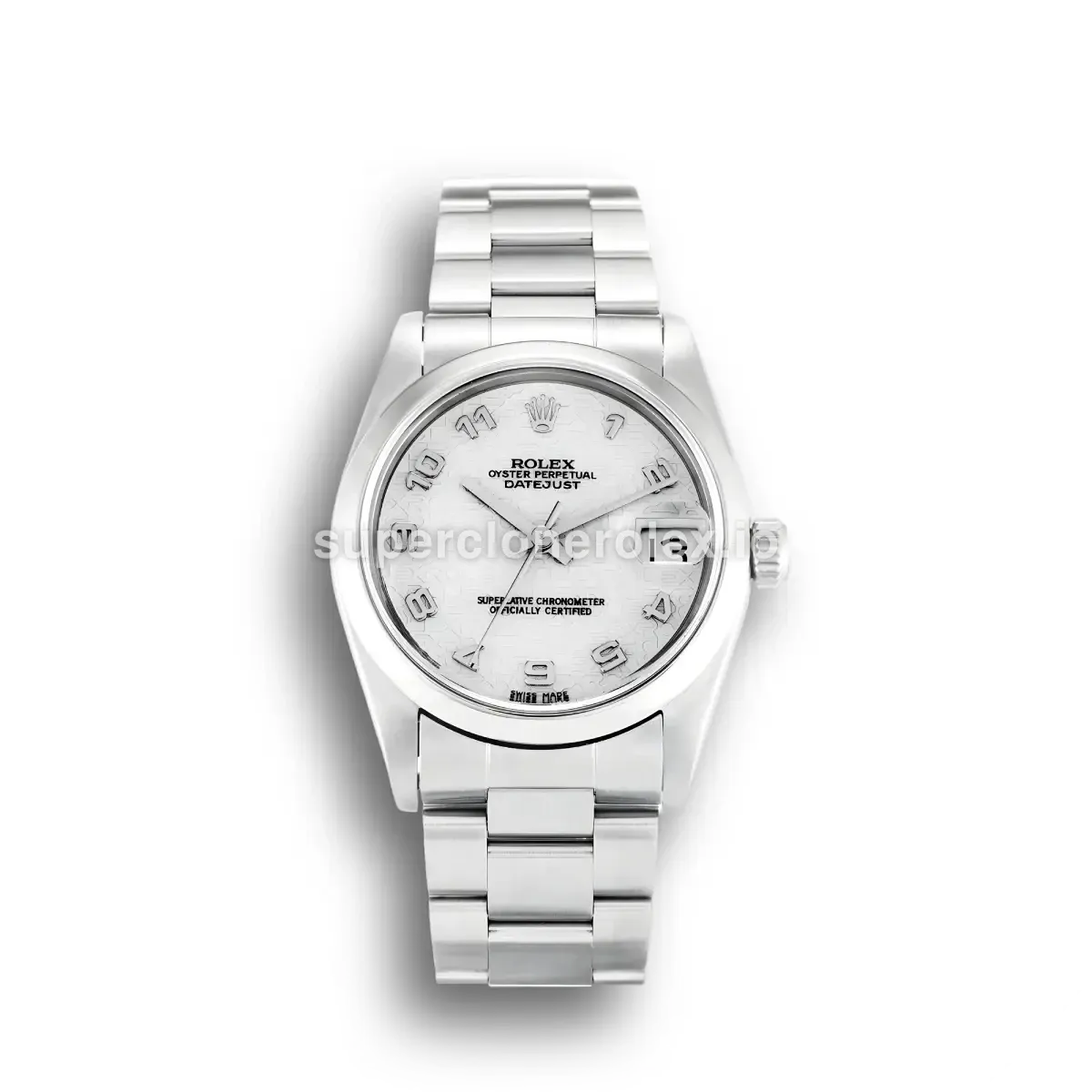 The Rolex Datejust 68240 Stainless Steel Mid-Size 30mm Ivory Dial features a Ivory Jubilee dial on a Oyster bracelet, powered by a precise automatic movement. Crafted in Stainless Steel with Sapphire crystal and 30m (Swiss), this Datejust reference delivers authentic Rolex aesthetics. Available in 30 mm, this elegant ladies timepiece offers premium quality super clone craftsmanship at an accessible price point.