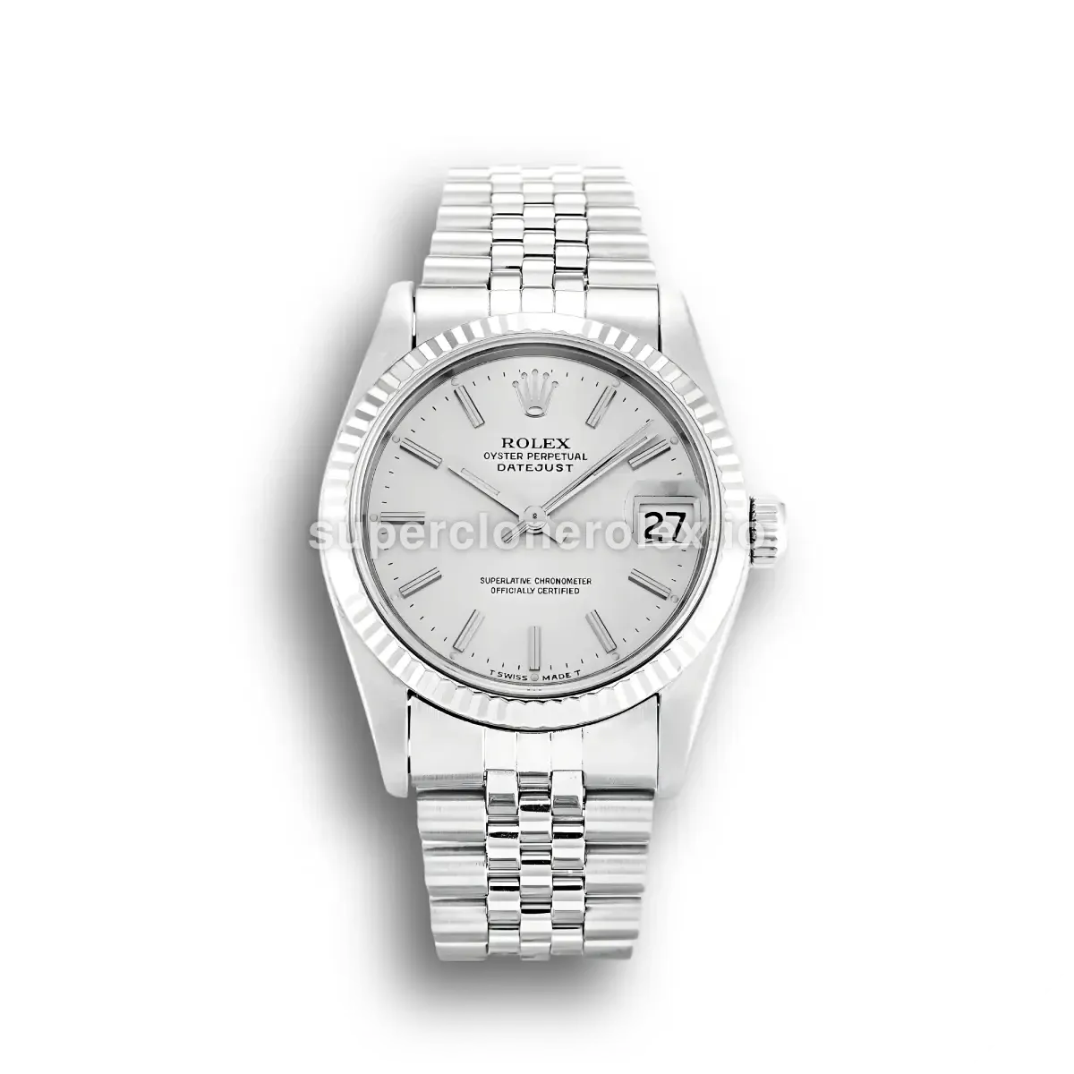 The Rolex Datejust 68274 - Mid-Size 31mm Silver Dial features a Silver dial on a Jubilee bracelet, powered by a precise automatic movement. Crafted in Stainless Steel with Sapphire crystal and 30m (Swiss), this Datejust reference delivers authentic Rolex aesthetics. Available in 31 mm, this elegant ladies timepiece offers premium quality super clone craftsmanship at an accessible price point.
