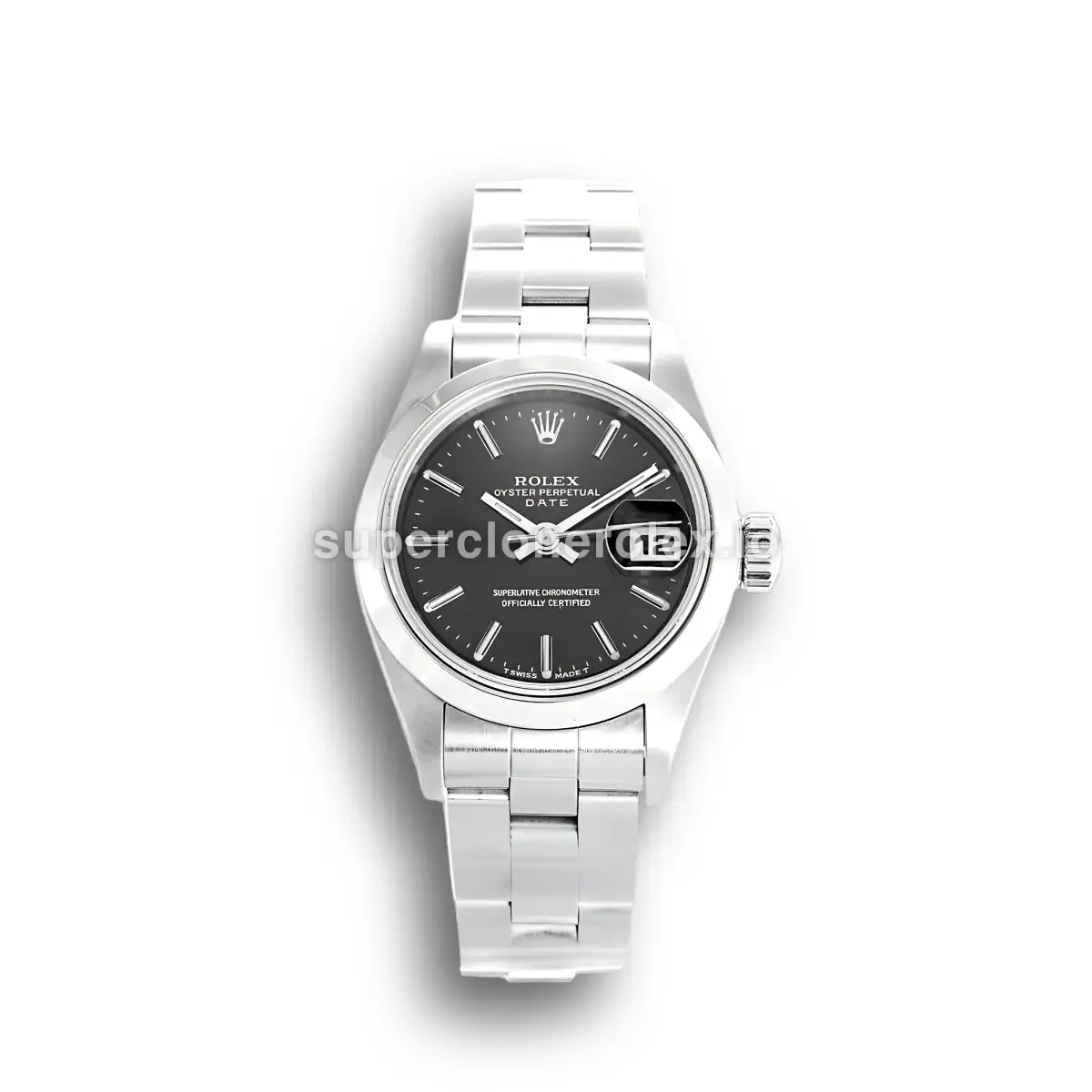 The Rolex Datejust 69160 - 28mm Black Dial Ladies Watch features a Black dial on a Oyster bracelet, powered by a precise automatic movement. Crafted in Stainless Steel with Sapphire crystal and 30m (Swiss), this Datejust reference delivers authentic Rolex aesthetics. Available in 28 mm, this elegant ladies timepiece offers premium quality super clone craftsmanship at an accessible price point.
