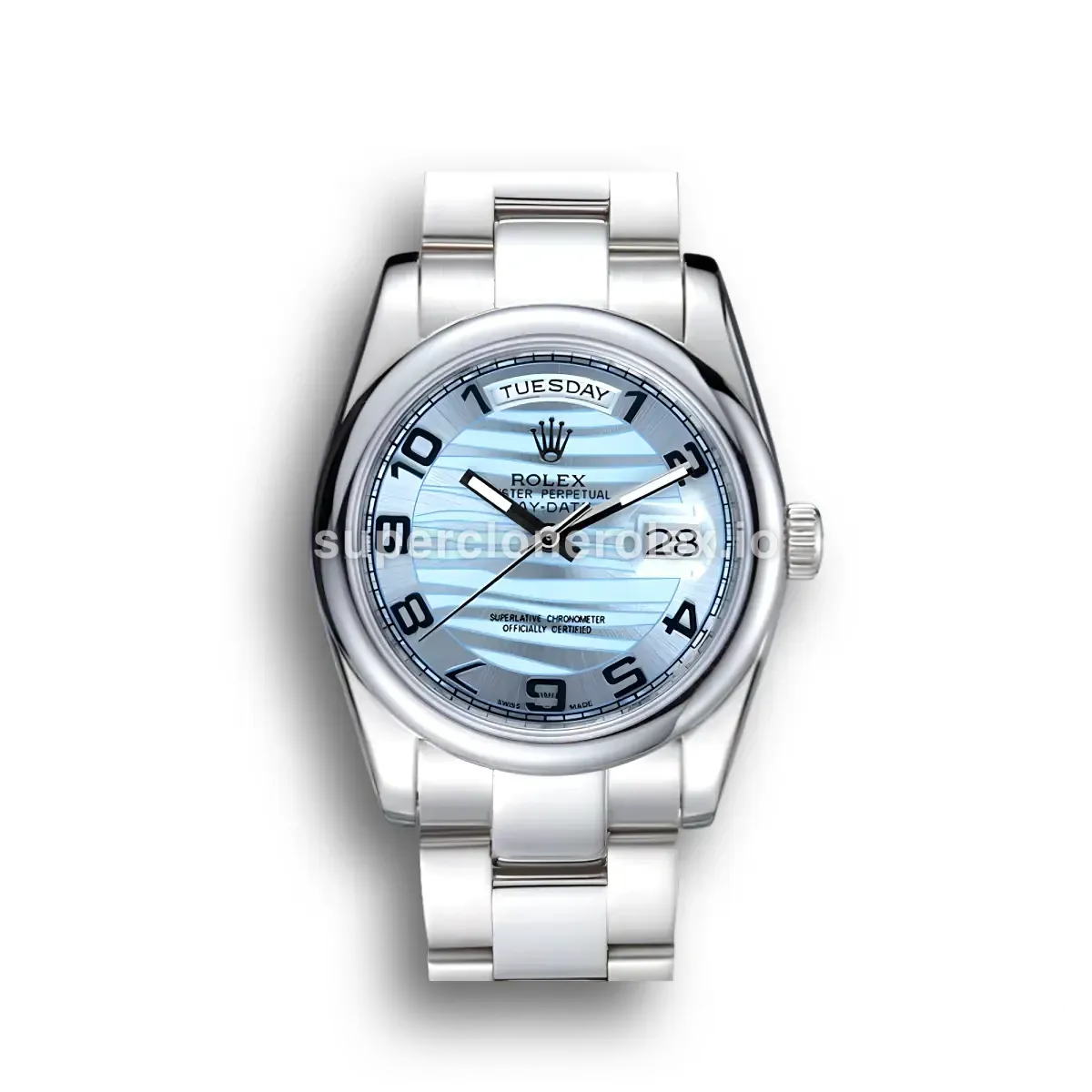 The Rolex Day-Date 7470 36mm Blue Dial Watch features a Blue dial on a Oyster bracelet, powered by a precise automatic movement. Crafted in Stainless Steel with Sapphire crystal and 30m (Swiss), this prestigious Day-Date reference delivers the authentic Rolex Presidents watch experience. Available in 36 mm, this elegant ladies timepiece offers premium quality super clone craftsmanship at an accessible price point.
