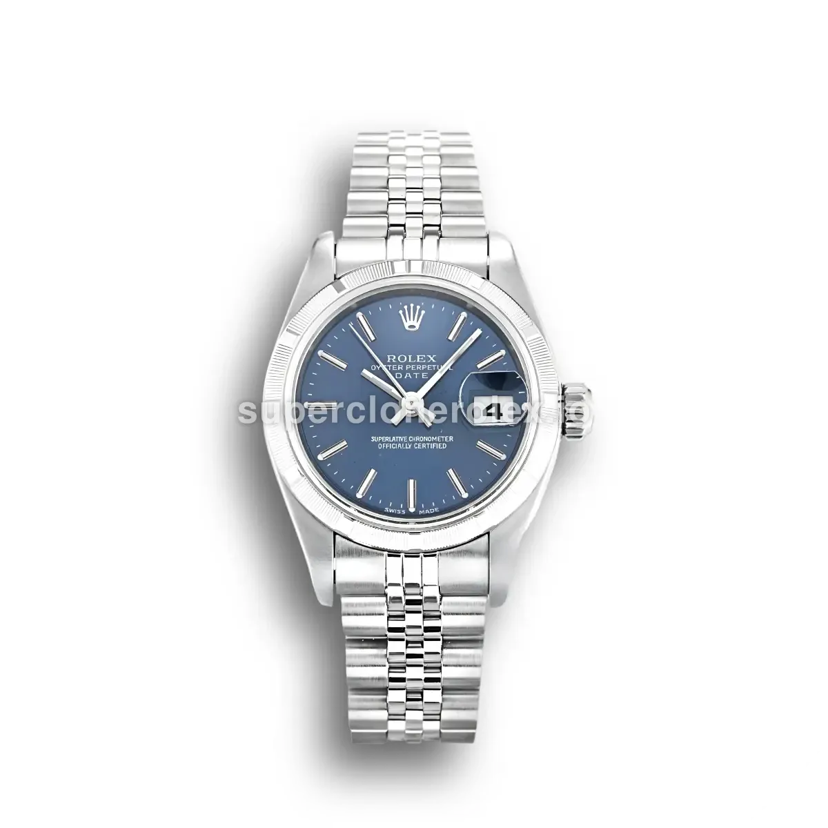 The Rolex Lady-Datejust 79190 Blue Dial 26mm Classic Steel features a Blue dial on a Jubilee bracelet, powered by a precise automatic movement. Crafted in Stainless Steel & White Gold Plated with Sapphire crystal and 30m (Swiss), this Lady-Datejust reference delivers authentic Rolex aesthetics. Available in 26 mm, this elegant ladies timepiece offers premium quality super clone craftsmanship at an accessible price point.