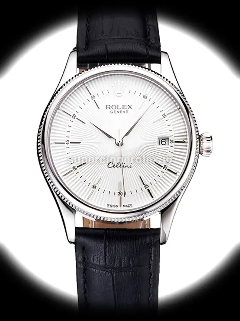 The Rolex Cellini 38mm White Dial - Timeless Class features a White dial on a Leather strap bracelet, powered by a precise automatic movement. Crafted in Stainless Steel with Sapphire crystal and 30m (Swiss), this Cellini reference delivers authentic Rolex aesthetics. Available in 38 mm, this precision timepiece offers premium quality super clone craftsmanship at an accessible price point.