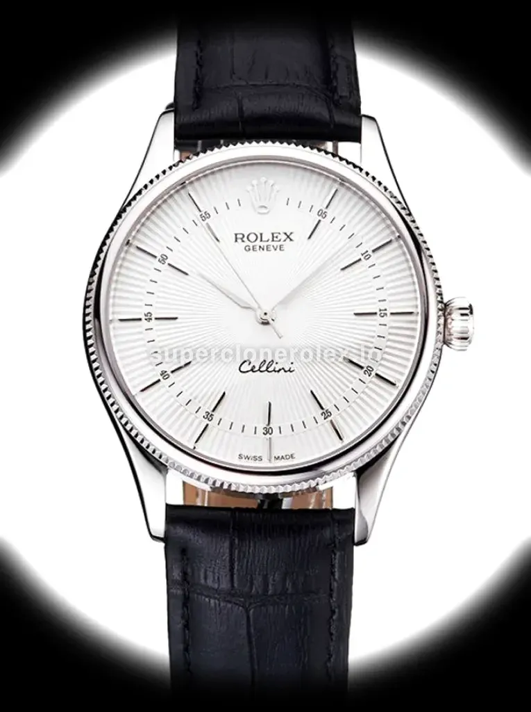 The Rolex Cellini 38mm White Dial - Distinguished Watch features a White dial on a Leather strap bracelet, powered by a precise automatic movement. Crafted in Stainless Steel with Sapphire crystal and 30m (Swiss), this Cellini reference delivers authentic Rolex aesthetics. Available in 38 mm, this precision timepiece offers premium quality super clone craftsmanship at an accessible price point.