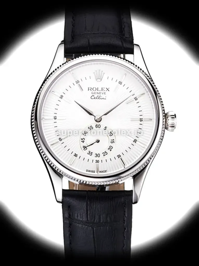 The Rolex Cellini 38mm White Dial - Sophisticated Design features a White dial on a Leather strap bracelet, powered by a precise automatic movement. Crafted in Stainless Steel with Sapphire crystal and 30m (Swiss), this Cellini reference delivers authentic Rolex aesthetics. Available in 38 mm, this precision timepiece offers premium quality super clone craftsmanship at an accessible price point.