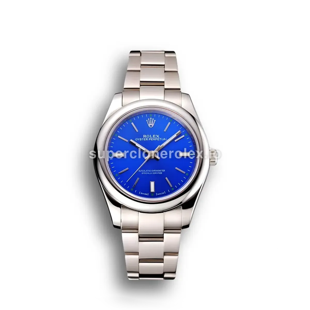 The Rolex Oyster Perpetual 41mm Blue Dial SC016835 features a Blue dial on a Oyster bracelet, powered by a precise automatic movement. Crafted in Stainless Steel with Sapphire crystal and 30m (Swiss), this Oyster Perpetual reference delivers authentic Rolex aesthetics. Available in 41 mm, this precision timepiece offers premium quality super clone craftsmanship at an accessible price point.