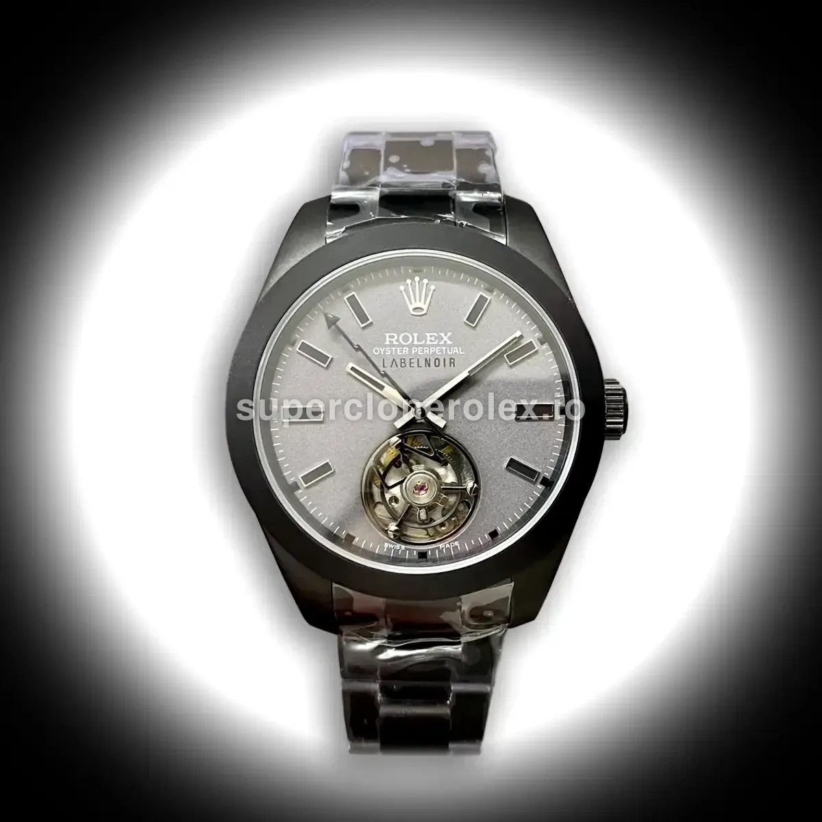 The Rolex Milgauss Label Noir Tourbillon 116400 Limited features a Silver dial on a Oyster bracelet, powered by a precise automatic movement. Crafted in Ion Plated Stainless Steel with Sapphire crystal and 30m (Swiss), this Milgauss reference delivers authentic Rolex aesthetics. Available in 40 mm, this precision timepiece offers premium quality super clone craftsmanship at an accessible price point.