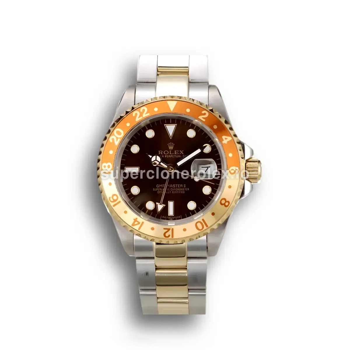 The Rolex GMT-Master II SC151515 - 40mm Black Dial Steel Case features a Black dial on a Oyster bracelet, powered by a precise automatic GMT movement. Engineered for world travelers with Sapphire crystal and dual-timezone tracking, this GMT-Master reference delivers authentic Rolex GMT aesthetics. Available in 40 mm, this precision timepiece offers premium quality super clone craftsmanship at an accessible price point.