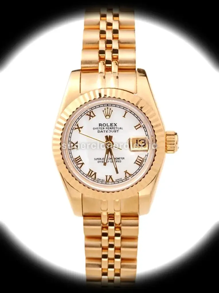 The Rolex Lady-Datejust 28mm – Refined White Dial features a White dial on a Jubilee bracelet, powered by a precise automatic movement. Crafted in Yellow Gold Plated with Sapphire crystal and 30m (Swiss), this Datejust reference delivers authentic Rolex aesthetics. Available in 28 mm, this elegant ladies timepiece offers premium quality super clone craftsmanship at an accessible price point.